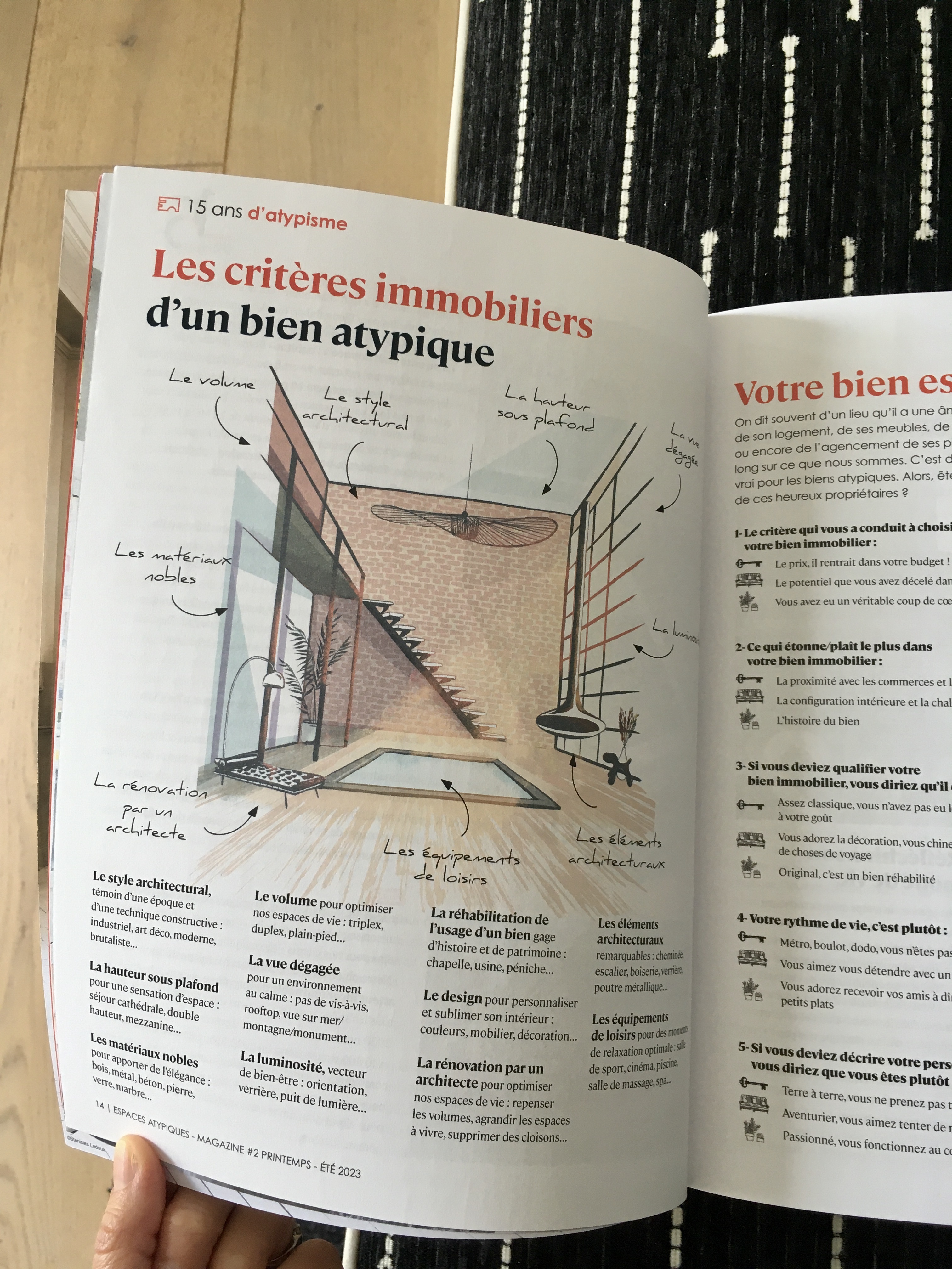 Illustrations pour le magazine “Vivre Autrement” d’Espaces Atypiques, dédié aux 15 ans de la marque.